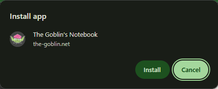 A new Goblin Lab update has made the notebook a Progressive Web App (PWA)! What does that mean? A couple of things… Firstly, on supporting browsers* you can now install the notebook which lets you open it like an app, with a shortcut on your desktop, home screen, or app drawer and having it run ..