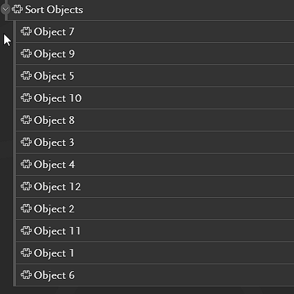 Child objects can be ordered alphabetically (or reverse alphabetically) from the context menu on the parent expand/coll..