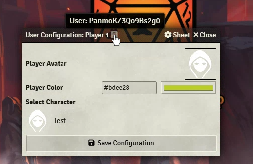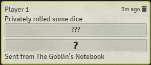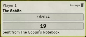 You are prompted to input two things needed to push the dice rolls. These settings are stored in your browser rather than in the campaign on the server so that if you were to open it on another device like a phone it won’t try and push any dice rolls.