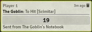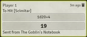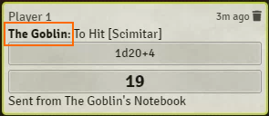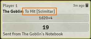 Show Dice LabelShow the value of the dicelabel setting of the rollable() syntax